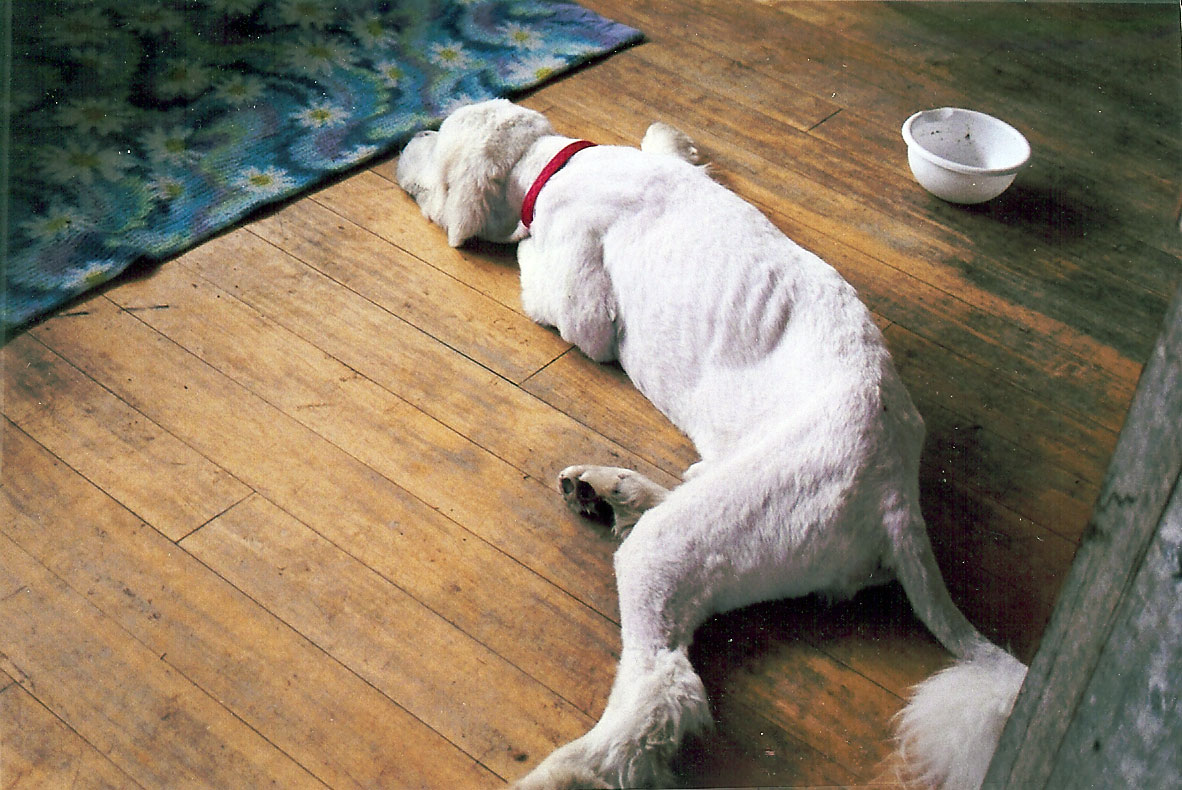 In the spring of this year, we received a frantic call from a man making his way back from easterly Washington with a very young Great Pyrenees dog with him that he had just rescued. He was charged with emotion having done the admirable thing of picking up the dog and securing it in his van and was now faced with the reality of what he would do with the starved, dehydrated, smelly, unruly animal he had found in the woods, tethered to a tree. The dog was expectedly nervous, had obviously never been loved or cared for by anyone and definitely had no manners nor house training. He also appeared to be suffering a severe ear infection.