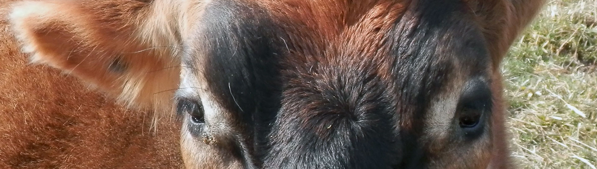 Dodge is a male calf that was brought to the auction by a dairy farm when he was one day old. He never received any colostrum, which is the first milk from his mother following his birth. This special milk provides protection against many diseases. He didn't want to get up, had diarrhea and was exposed to many diseases at the auction. At the end of the auction, no one wanted him and he was to be shot with two other calves close to him.