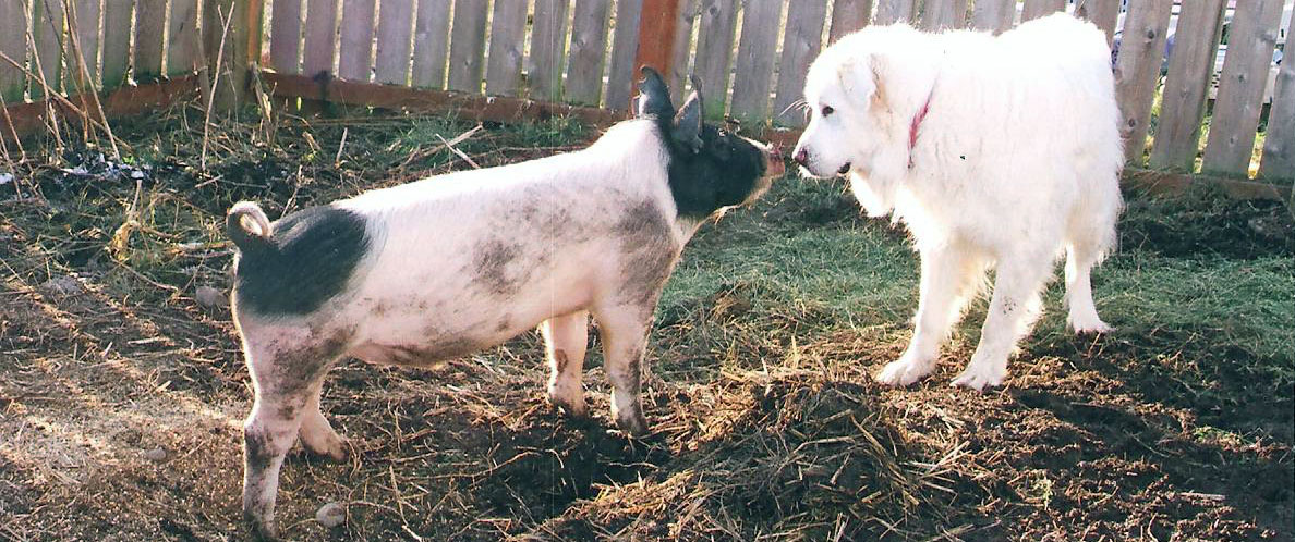 A brother and sister were all that were left of the four-month old family that had been slaughtered during the prior week for the holidays. I could only take one and allow it to live. The heartbreaking decision was made easier because the baby female, fearful at being watched, buried her head in a pile of straw. The male came forward, cocked his head and fixed an inquisitive stare at the two-legged giant on the other side of the pen.