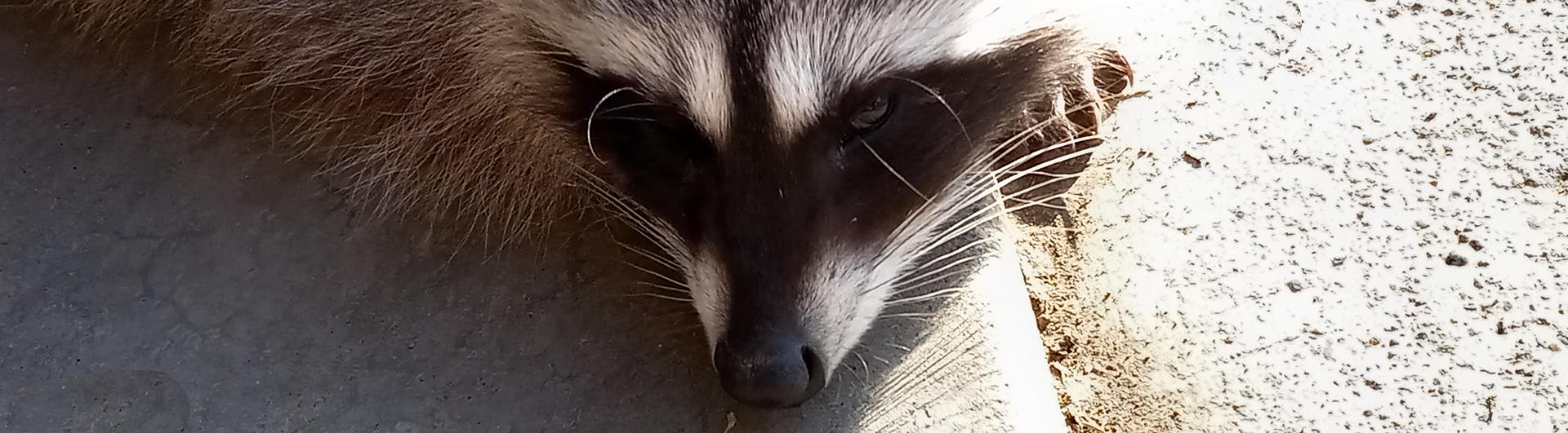 As I approach the barn door next to the shed facing the barn, I hear unfamiliar cries of distress and follow the sounds to the rear of the shed and spot a small opening underneath the foundation. Inside, I see a litter of new born raccoons, three are dead, two barely alive and no mother who more than likely has been killed by some predator.