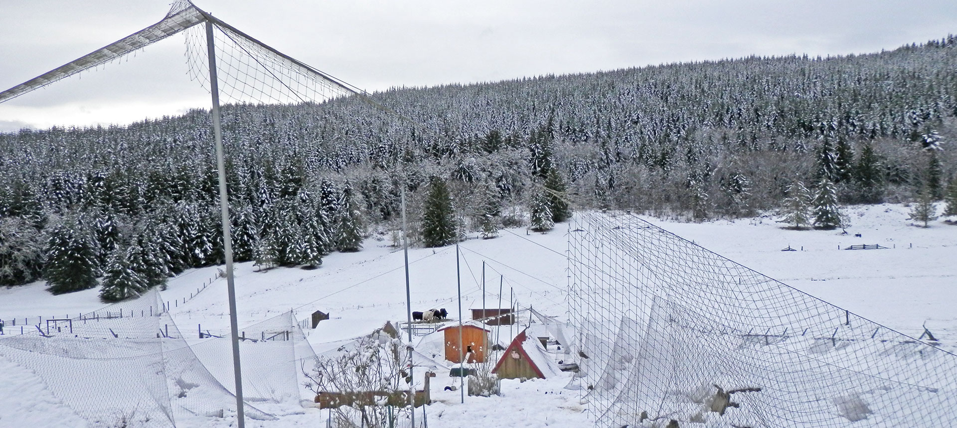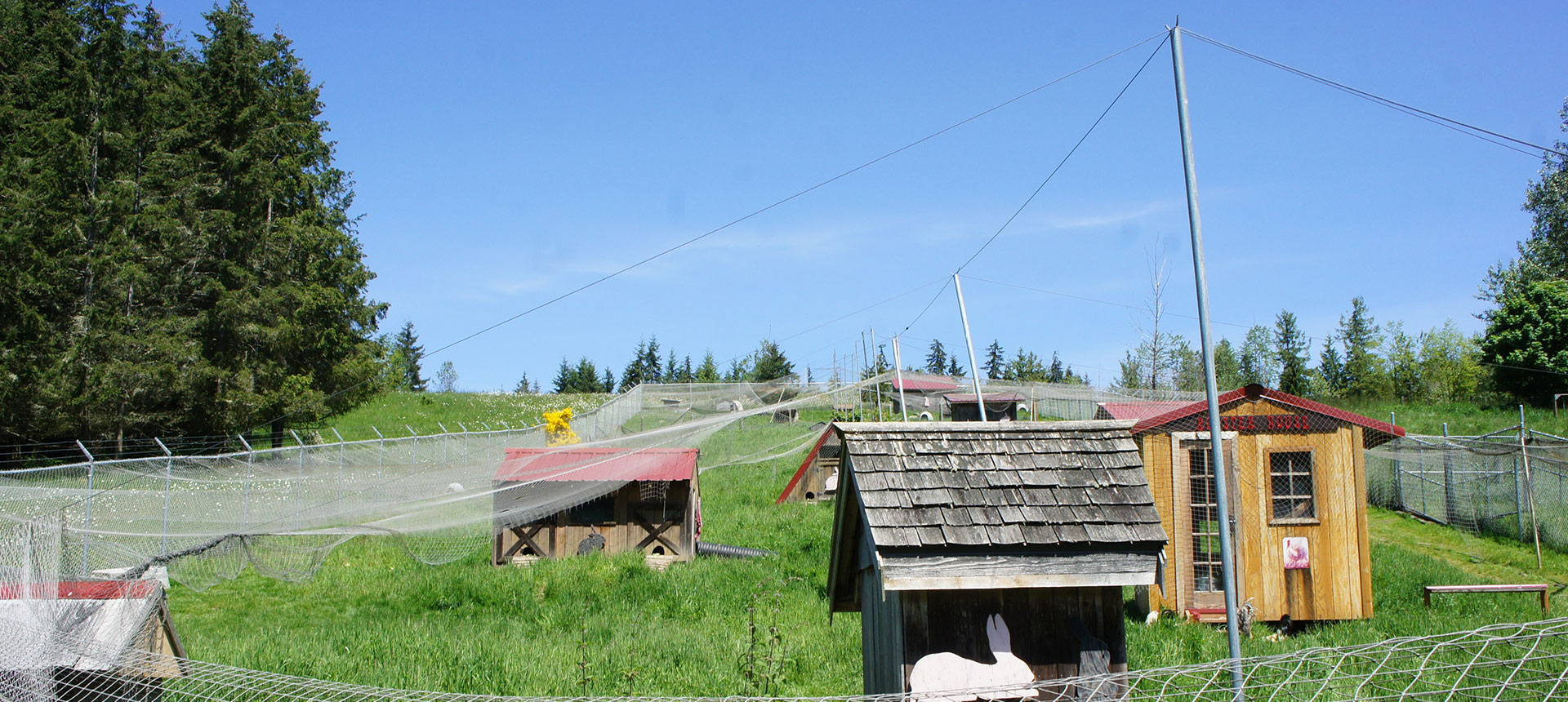 Our netting that protects the rabbits from predators was damaged by snow this winter. We sent out the following calls for help and your generosity provided the funds needed to replace this half acre of netting that shelters the rabbits from the predators that live in the foothills of the Olympic mountains.