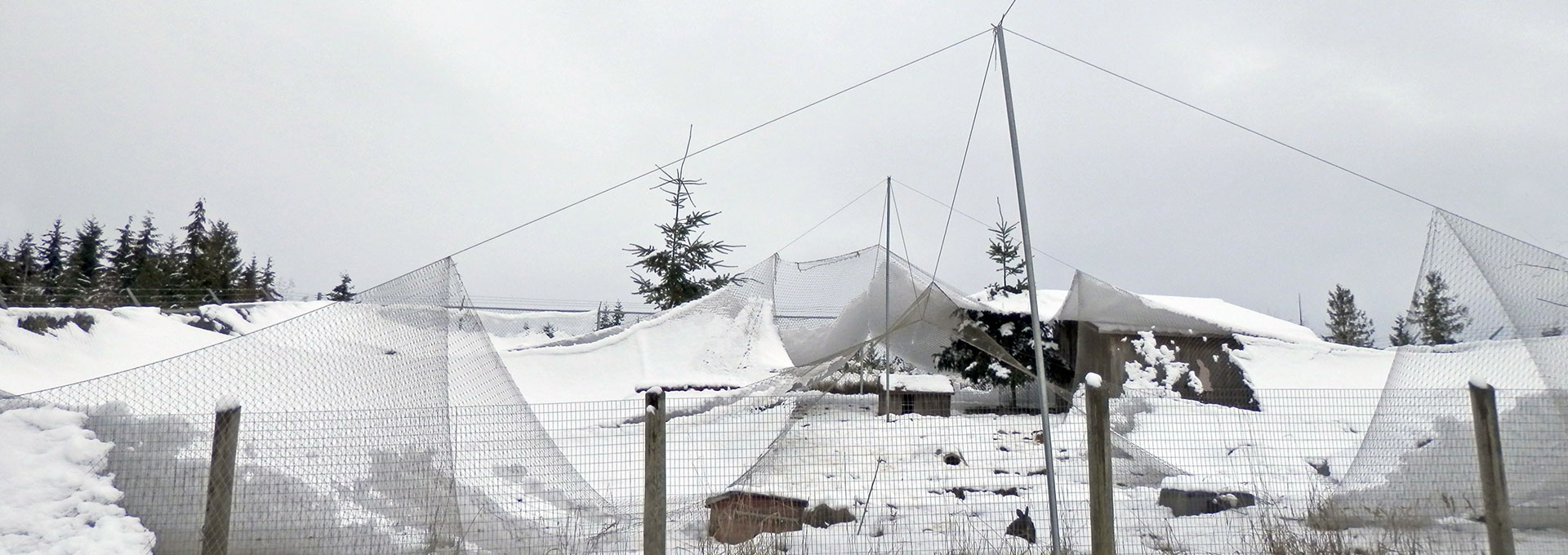 The severe winter snow storms have torn and collapsed the entire overhead protective netting above the rabbit enclosure. Funds are desperately needed to install new and improved netting to cover the unique, one-half acre enclosure.