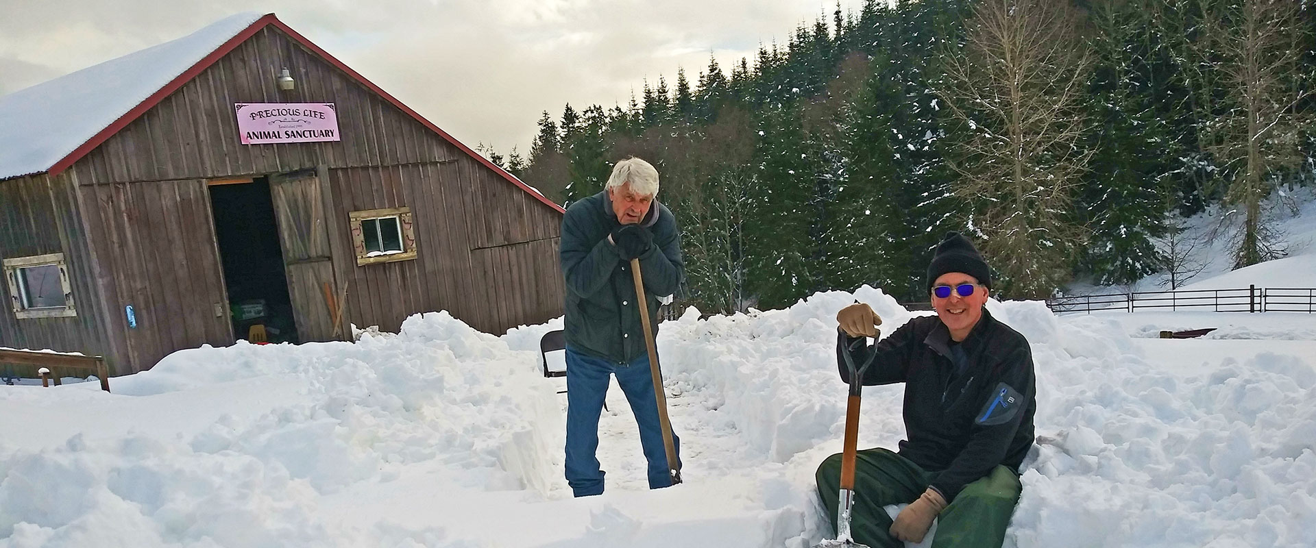 Until one tries to walk a few feet in snow this deep, it is hard to imagine the difficulty and energy it takes and the hardship on all the animals as well as the two founders. We were fortunate to have one incredible volunteer who agreed to stay in our cabin and helped shovel snow day after day during the storms. Without his assistance, many of our beloved animals would have perished.